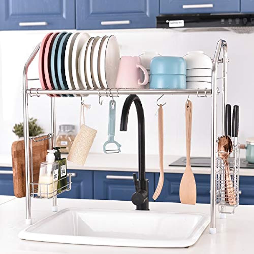I find this to be more sanitary than the fabric drying mats that i was previously. This wonderful dish rack can also easily fit into a cabinet space below the sink for storage.read more. Give your cooking space an upgrade with kitchen organizers. It's designed to hang above your countertop, freeing up the counter space below for more important kitchen tasks. Once you have finished, it folds up neatly and can then be tucked away in a cabinet nearby.