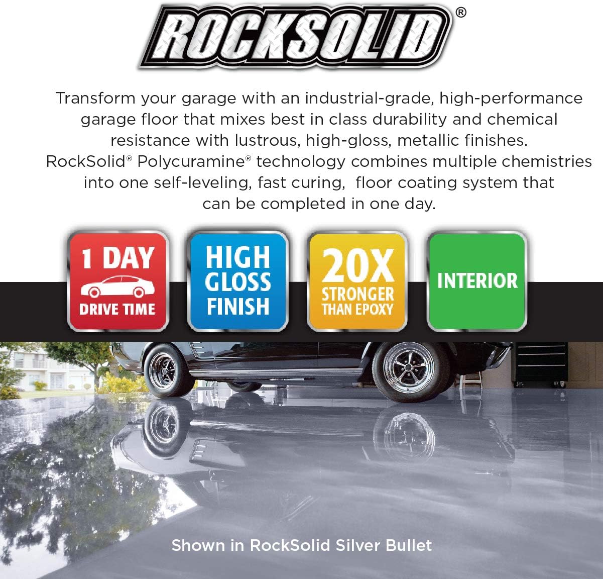 Dark gray polycuramine professional floor coating. Resists salt, oil, gas and other harsh I decided to look into this rustoleum rock solid product. Ships from and sold by americamart. Unique formula contains up to 96% solids for amazing durability and chemical resistance while remaining low odor and voc free. Rocksolid professional industrial floor coating, like all rocksolid polycuramine® coatings, offers unsurpassed durability. It's impervious to hot tire pick up. It's easy to maintain and will last a lifetime while still looking fantastic. This polycrylamine garage floor coating is much different than paint and mor. Rocksolid floors polyurea is the latest advancement in coating technology, providing the best of all worlds. Polycuramine formula provides excellent hardness, adhesion and durability on properly prepared concrete floors. Ships from and sold by maxwarehouse. Ships from and sold by amazon.com.